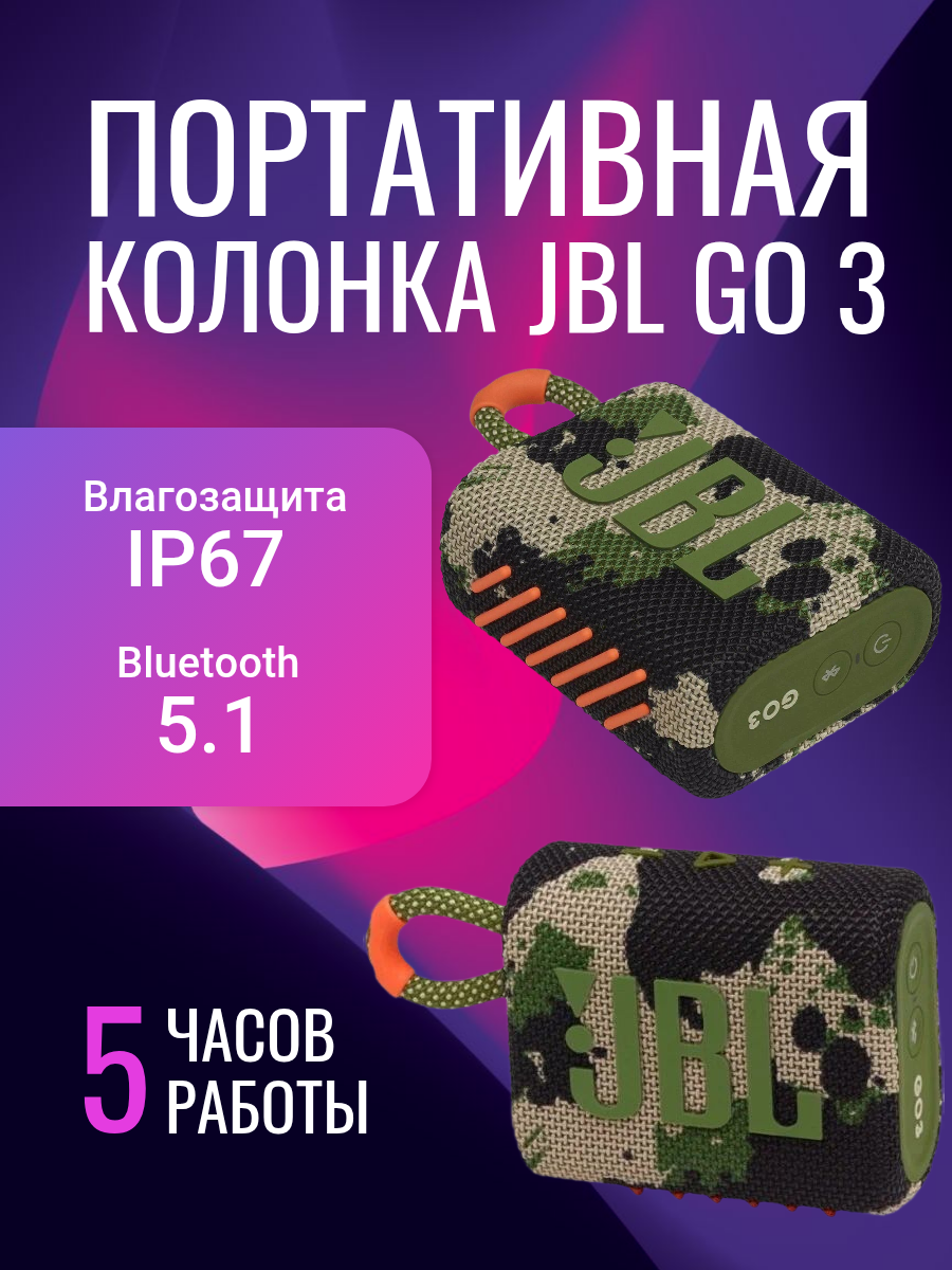 JBL Go 3 - портативная колонка, которая обеспечивает качественный звук и удобство использования.